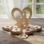 Centro de mesa Boda iniciales a elección medida 24 cm alto realizado en madera de 3 mm una opción elegante para tu fiesta.