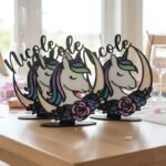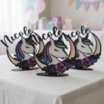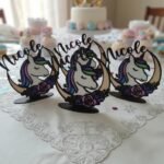 Centro de mesa tematica Unicornio nombre y color a elección medida 24 cm alto realizado en madera de 3 mm una opción elegante para tu fiesta, cumpleaños, Baby shower y más….